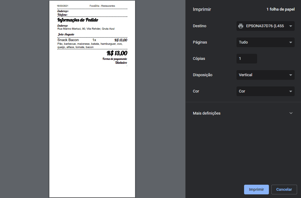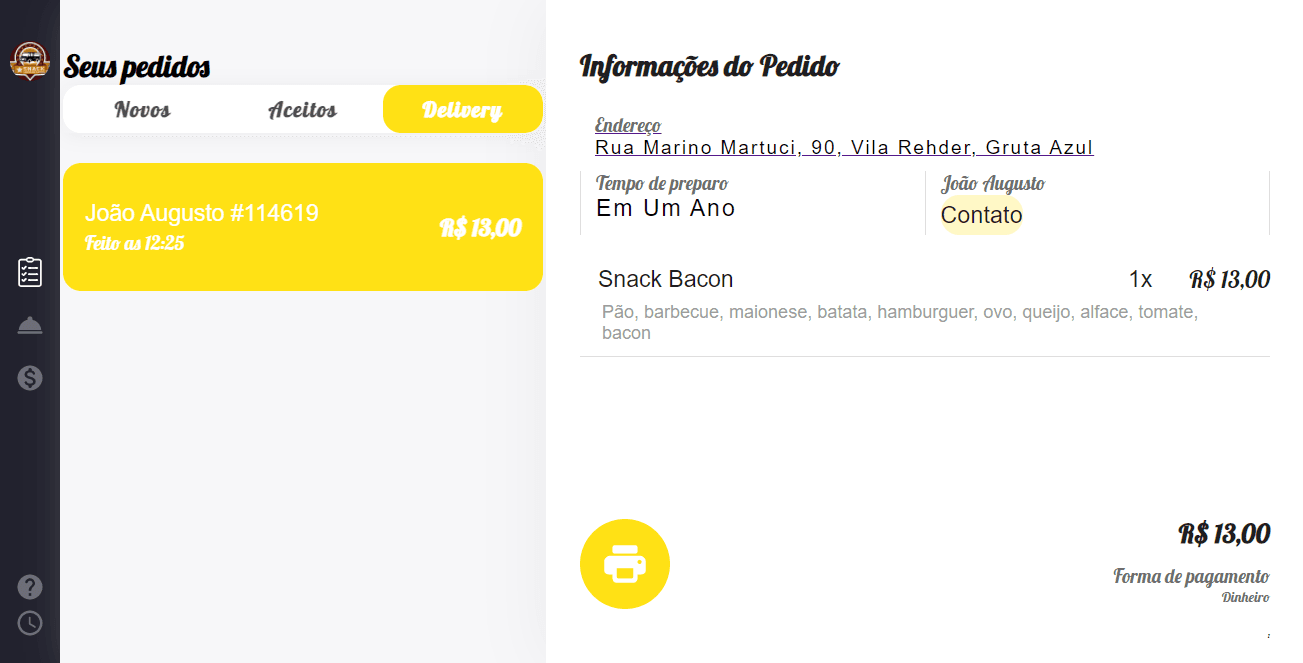 This client was a delivery plataform requesting a dashboard so they paterns could menage they orders consuming they existing API.